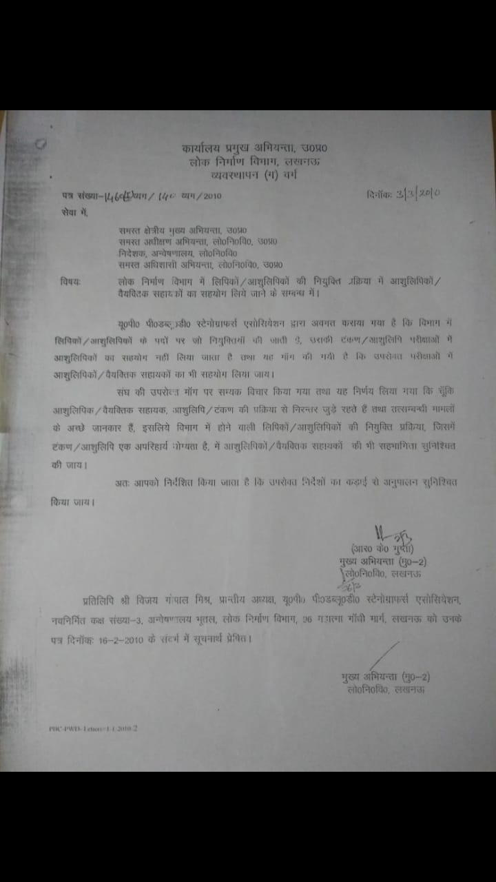 Niyukti Prakriya me Steno ka Sahyog Liye jane Sambandhi